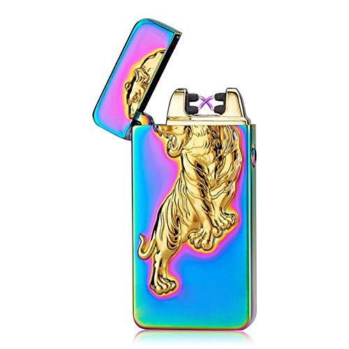 Padgene Electronic Pulse Double Arc Cigarette Lighter, Tiger Flameless USB Rechargeable Arc Lighter, Mix Color