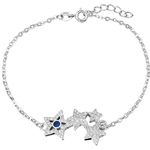 EleQueen 925 Sterling Silver CZ 4 Shining Star Bracelet Chain, 7"+0.8" Extender