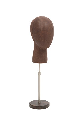 Newtech Display BFF-HEAD/BRR Brown Leatherette Head form with Wood Base and Satin Nickel Adjustable Stem