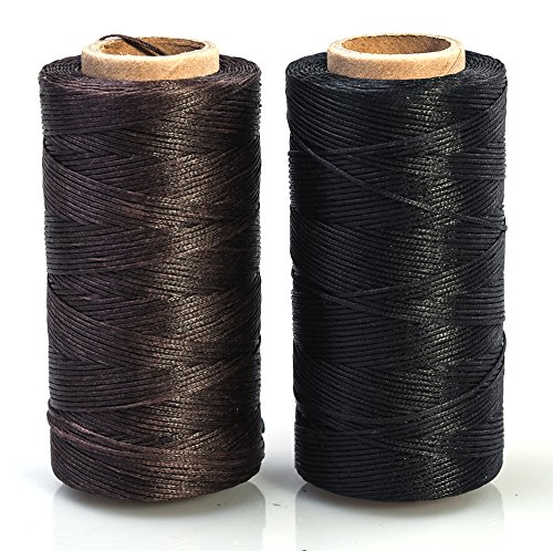 Annic 2pcs 0.8mm Waxed Thread for Leather Sewing Leathercraft Tool Stitching Cord 284yd Black and Brown
