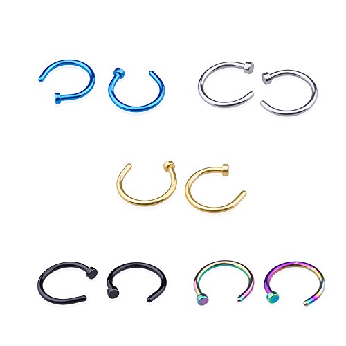 Baloray Pack of 10 (5pairs) Hot Colorful Stainless Steel Nose Open Hoop Ring nose Studs Earring Body Piercing Studs Body Slave Jewelry Nose Ring