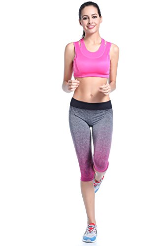 Women's Ombre Active Running Workout Capri Legging Tights Zip Yoga Pants