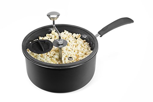 Zippy Pop 00042-01-ZIP Stovetop Popcorn Popper with Glass Silicone Rimmed Lid, 5-1/2 quart, Black