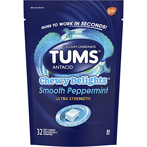 TUMS Antacid, Chewy Delights Smooth Peppermint Ultra Strength Soft Chews for Heartburn Relief, 32 count