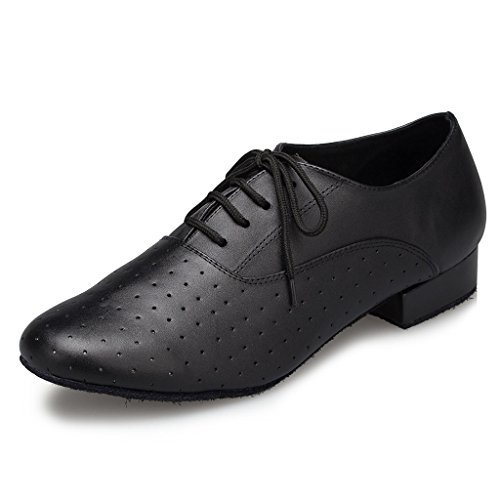 CRC Men's Stylish Round Toe Lace Up Black Leather Salsa Tango Ballroom Morden Latin Jazz Rumba Professional Dance Shoes