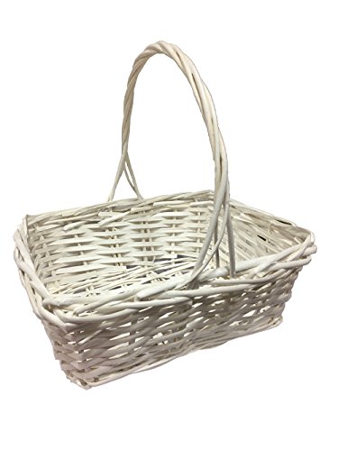 HomeSource Rectangle Willow Basket, White (8" x 7" x 9")
