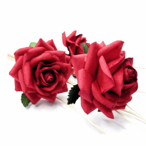 TropicaZona Handmade Mulberry (Saa) Paper Rose Aroma Oil Rattan Reed Diffuser Sticks Set, Red Color
