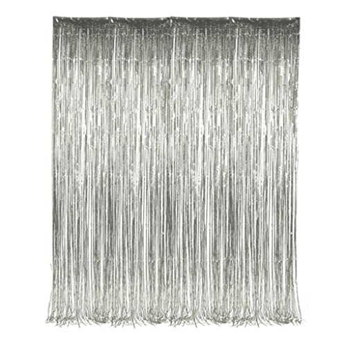 Set of 2 Silver Foil Fringe Door & Window Curtain Party Decoration 3' X 8' (36" X 96") "Value Pack of 2"