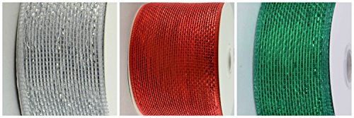 2 1/2" Wide Silver, Red & Hunter Green Metallic Mesh Ribbon Combo - 60 Feet Each Roll