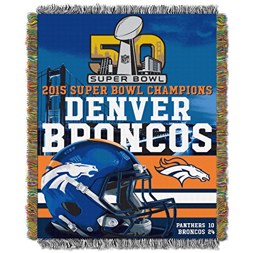 The Northwest Company NFL Denver Broncos Super Bowl 50 Champions Champs Divide Tapestry Throw, 48" x 60", Blue
