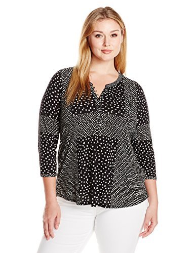 Lucky Brand Women's Plus Size Placed Ditsy Print Top, Black/Multi, 1X