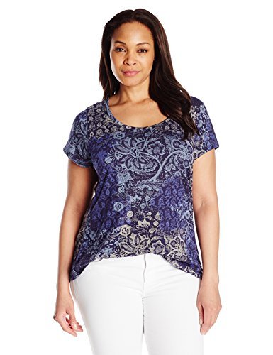 Lucky Brand Women's Plus Size Printed Patchwork T-Shirt, Blue/Multi, 2X