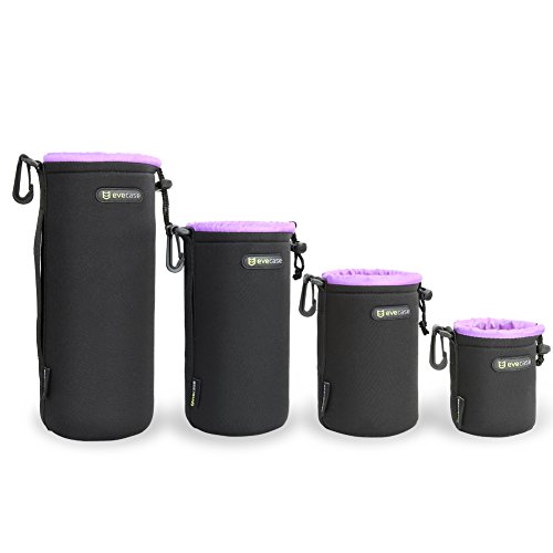 Lens Pouch Evecase Set of 4 Neoprene Pouch Bag with Soft Flush Interior for DSLR Digital Camera Lens - Small/Medium/Large/X Large
