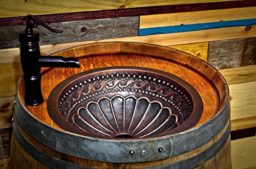Wine Barrel Copper Sink Vanity with Hidden Hinged Door and Antique Waterfall Faucet