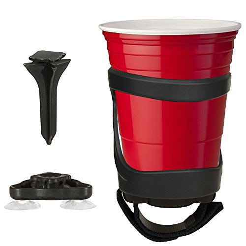 SunChaser Drink Holder for Cups and Bottles, Holds Cans and Tumblers - Comes with Drink Stake, Beverage Holder with Strap and Suction for Boats - Cupholder Gift - Graphite Grey