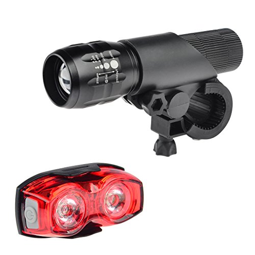 Bicycle Light, iTECHOR Zoomable Adjustable Focus LED Headlight Flashlight + Two Eyes Taillight Rear Bike Light Set, Quick-Release
