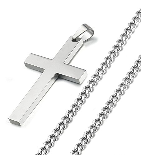 FIBO STEEL Stainless Steel Cross Pendant Chain Necklace for Men Women, 24 Inches
