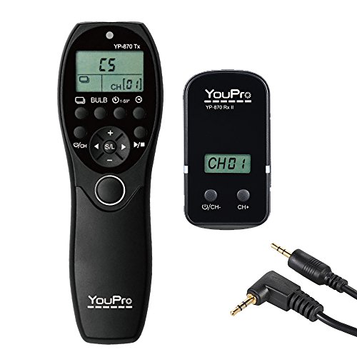 YouPro YP-870 E3 2.4G Wireless Remote Control LCD Timer Shutter Release Transmitter Receiver 32 Channels for Canon Rebel T2i T3i T4i T5i Pentax Samsung ContaxCamera