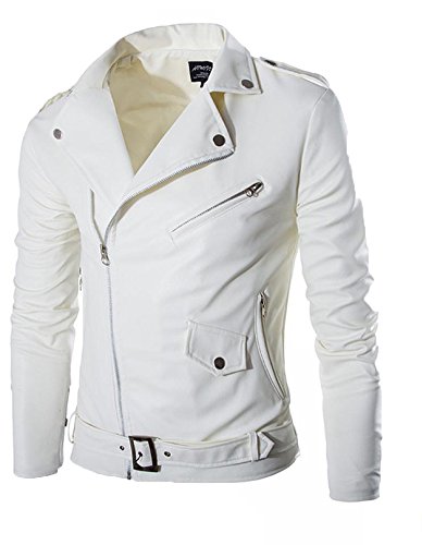 Mens Zipper Black/White Motorcycle PU Leather Bomber Biker Jacket