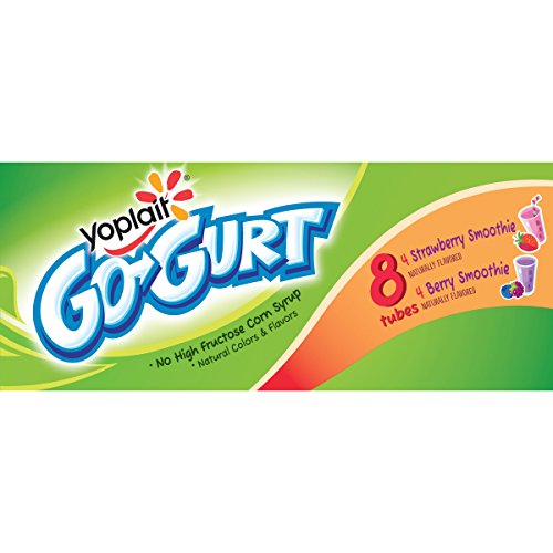 Yoplait Go-Gurt Portable Low Fat Yogurt Variety Pack, Strawberry Smoothie/Berry Smoothie, 18 oz