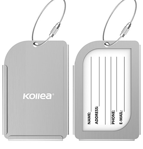 Luggage Tags, Kollea 2 Pack Aluminum Business Card Holder Travel ID Bag Tag - Silver