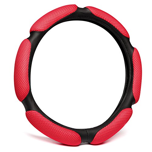 Car Steering Wheel Cover Red On Black - SeatSmart Sporty Sandwich,Universal,PU Leather,Breathable
