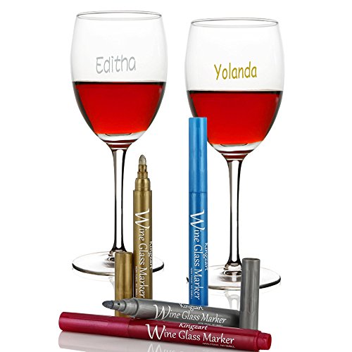 Kingzart 4 Packs Wine Glass Markers Metallic Pens - Best Alternative to Wine Charms, Perfect for Weddings, Birthday, Family Parties