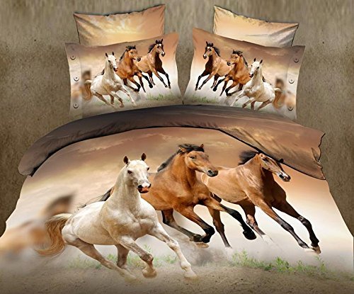 Lovelyou Three Horses 100% Cotton Queen Size 3d Print Bedding Set (1 Duvet Cover + 1 Bed Sheet + 2 Pillow Case)