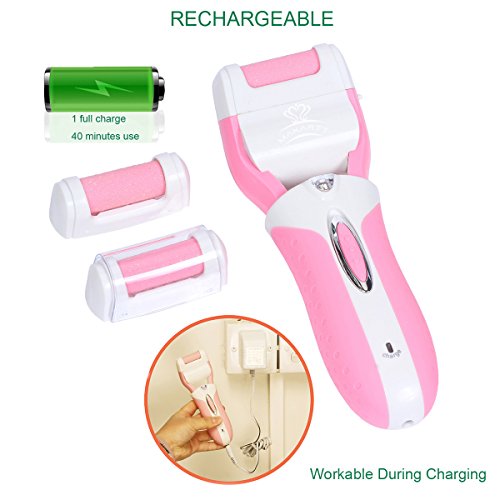 MAKARTT ® Powerful LED Light 3 Rollers Rechargeable Electric Callus Remover Pedicure Tools Foot File Buffer Callus Shaver