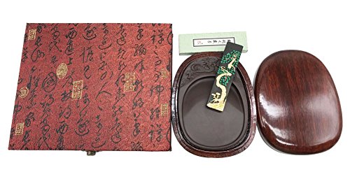Easyou Duan Ink Stone Carved with Bats + Hukaiwen Refined Oil Soot Ink Stick