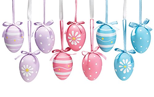 Pastel Easter Egg Ornaments 12 Assorted Designs Holiday Gift Home Decor- Set of 12