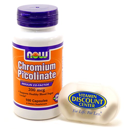 Bundle – 2 Items : 1 Bottle of Chromium Picolinate 200Mcg by Now Foods - 100 Caps and 1 VDC Pill Box