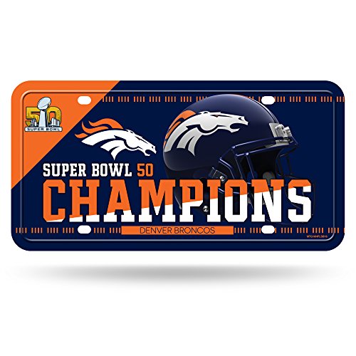 Rico Industries NFL Denver Broncos Super Bowl 50 Champions Metal Auto Tag,12-Inch by 6-Inch,Blue