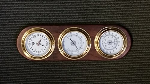 Brass and Wood Weather Station, Thermometer, Hygrometer, Quartz Clock