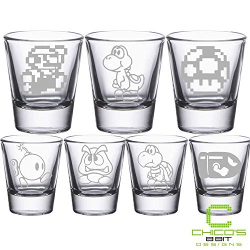 Super Mario Bros - Mario, Goomba, Yoshi, Mushroom, Bullet Bill, Bob-omb, Koopa Troopa shot glasses