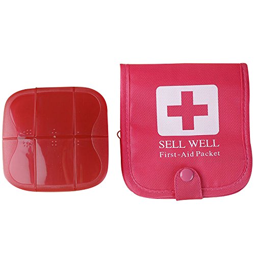 PuTwo Pill Box Case Square Organizers Storage Box with Multi-Pockets Bag, Red, 5.61 Ounce