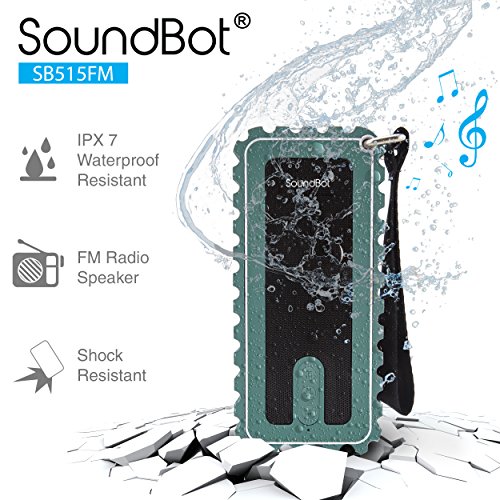 SoundBot SB515FM FM RADIO Bluetooth Wireless Shower Speaker IPX7 WaterProof Shock-Proof Weather Resistant Portable Radio Tuner w/ Auto-Scan, 15Hrs Playback Music Streaming, Premium HD Acoustic Sound
