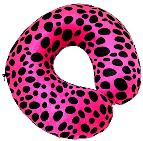 MP Essentials Super Velour Luxury Memory Foam Comfort Neck Support Cushion (Travelling, Car, Plane, TV, Reading) (Pink Leopard)