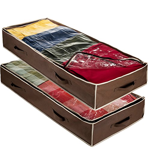 ZOBER Flexible Zippered Underbed Storage Bag (Pack of 2) Breathable Polypropylene Storage Bags for Blankets Clothes, Shoes, and Linens 18 x 42 x 6 inches - Java