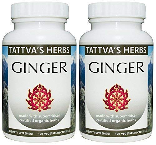 Organic Ginger Capsules - Full Spectrum Holistic Extract Digestive Aid, GI Track Support, Immunity Booster, Non-GMO Vegan 500 mg. 240 Vcaps (2 Pack - 120 ct./ea) from Tattva's Herbs