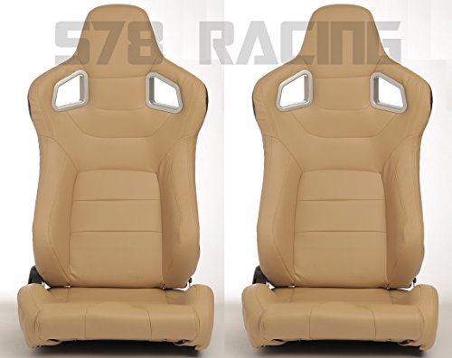 PAIR OF EURO TYPE-R BEIGE LEATHERETTE W/CARBON FIBER PVC UNIVERSAL RACING SEATS