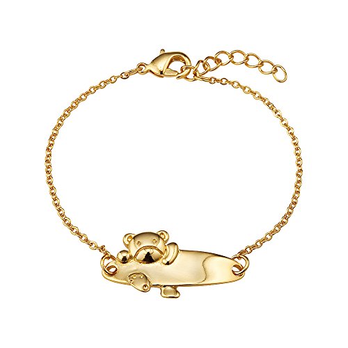 14k Gold Plated Brass Baby Bear ID Rolo Link Chain Girls 6" Adjustable Tag Bracelet