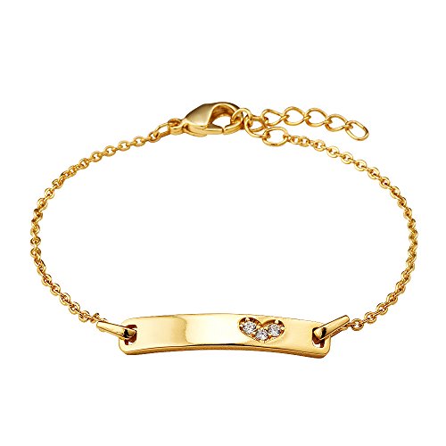 Children Earrings by Lovearing 14k Gold Plated Brass Baby ID Cubic Zirconia Heart Rolo Link Chain Girls 6" Adjustable Tag Bracelet