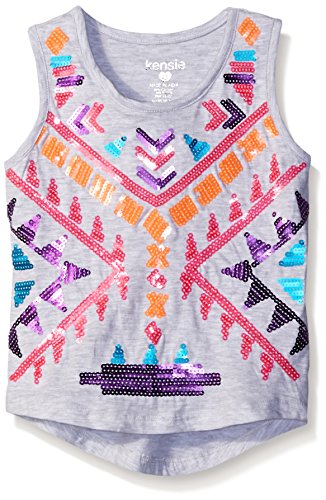 kensie Girls' Knit Tank with Aztec Sequin Trim
