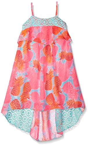 Limited Too Girls' Pineapple Print Chiffon Dress with Lace Overlay Edged Ruffle