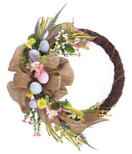 Easter Eggs with Burlap Bow Decorative 16" Spring Easter Wreath