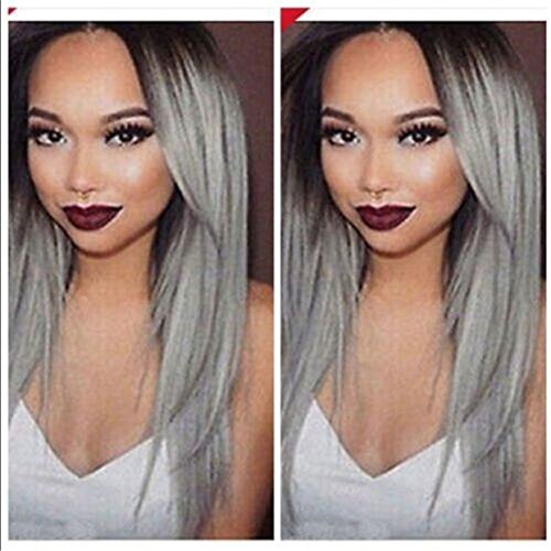 Futuretrend®long Straight Hair Two Tone Black and Grey Ombre Wig Heat Resistant Fiber Synthetic Wigs