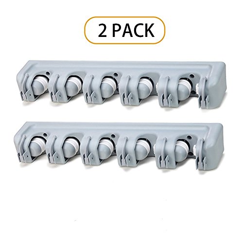(Two Pcs) Ibell Mop Broom Holder Wall Mounted, 5 Position with 6 Hooks, Holds up to 11, Perfect Storage for Broom Holders, Garage Storage Systems-Space Saver