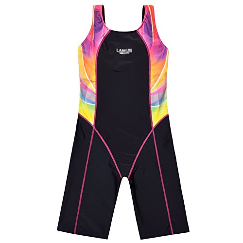 Perfashion Children Girl's Splice Athletic One-Piece Swimsuits Competive Legsuit Full Knee Length Swimsuit