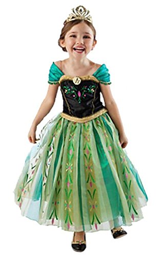 Callabero@ Kids Girls Princess Anna Elsa Deluxe Girl's Costume Enchanting Party Dress (100cm Fit 3-4T)
